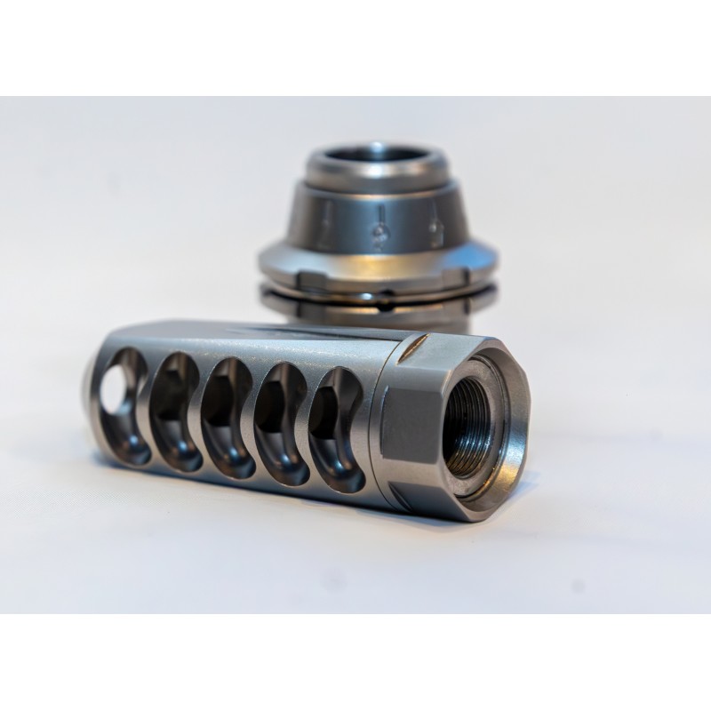 The compensator features optimized ports that minimize gas turbulence, delivering exceptional performance in a compact package.